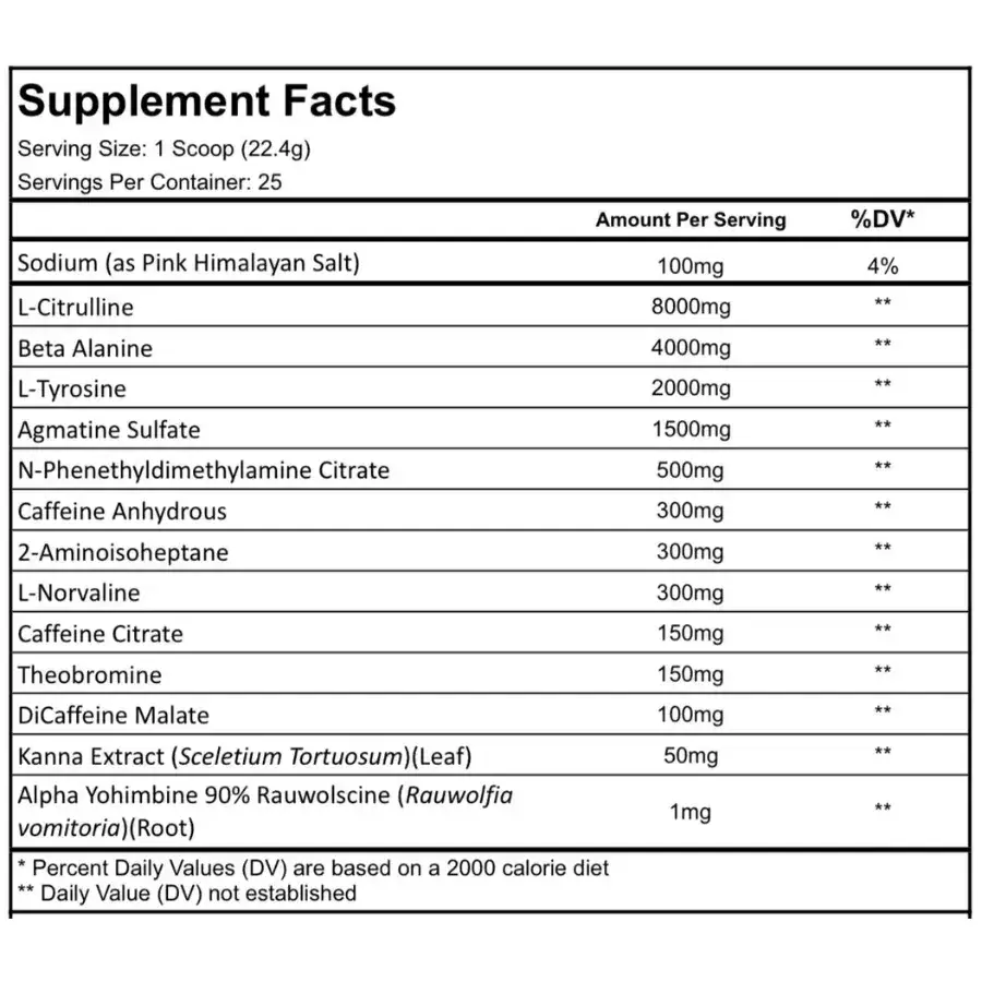 Each scoop delivers a potent mix of pump enhancers, endurance boosters and focus-supporting compounds, creating a complete, high-intensity pre-training experience. Expect powerful energy, tunnel vision focus and lasting performance from warm-up to final set.