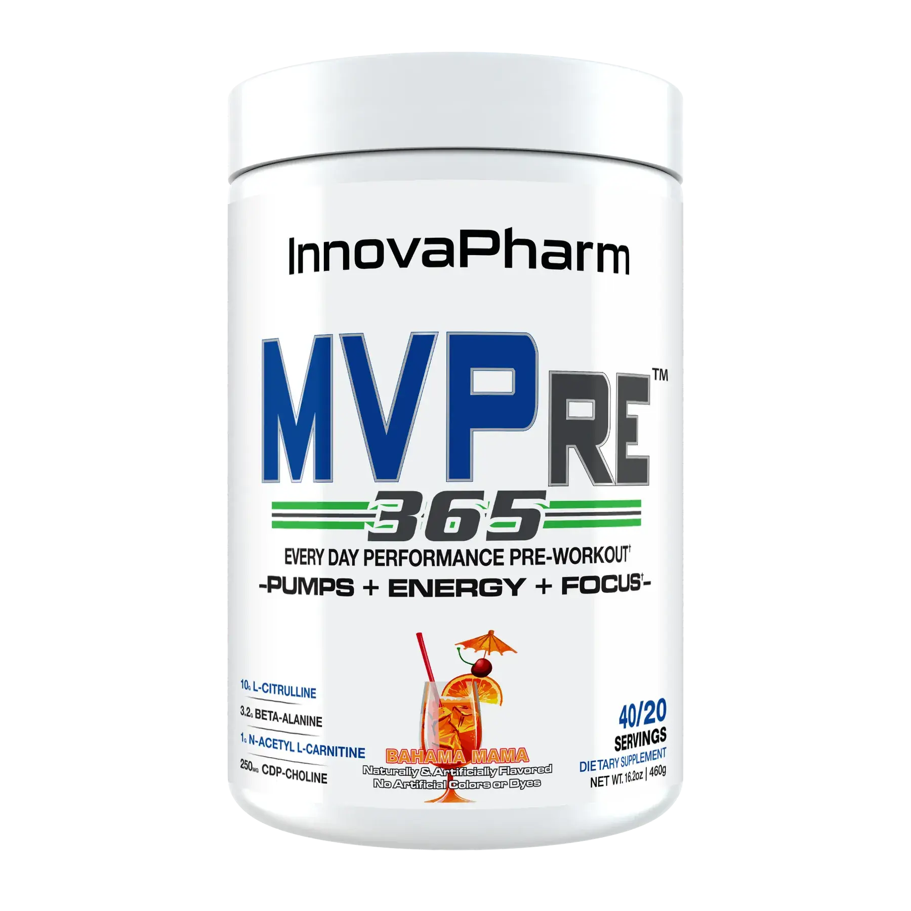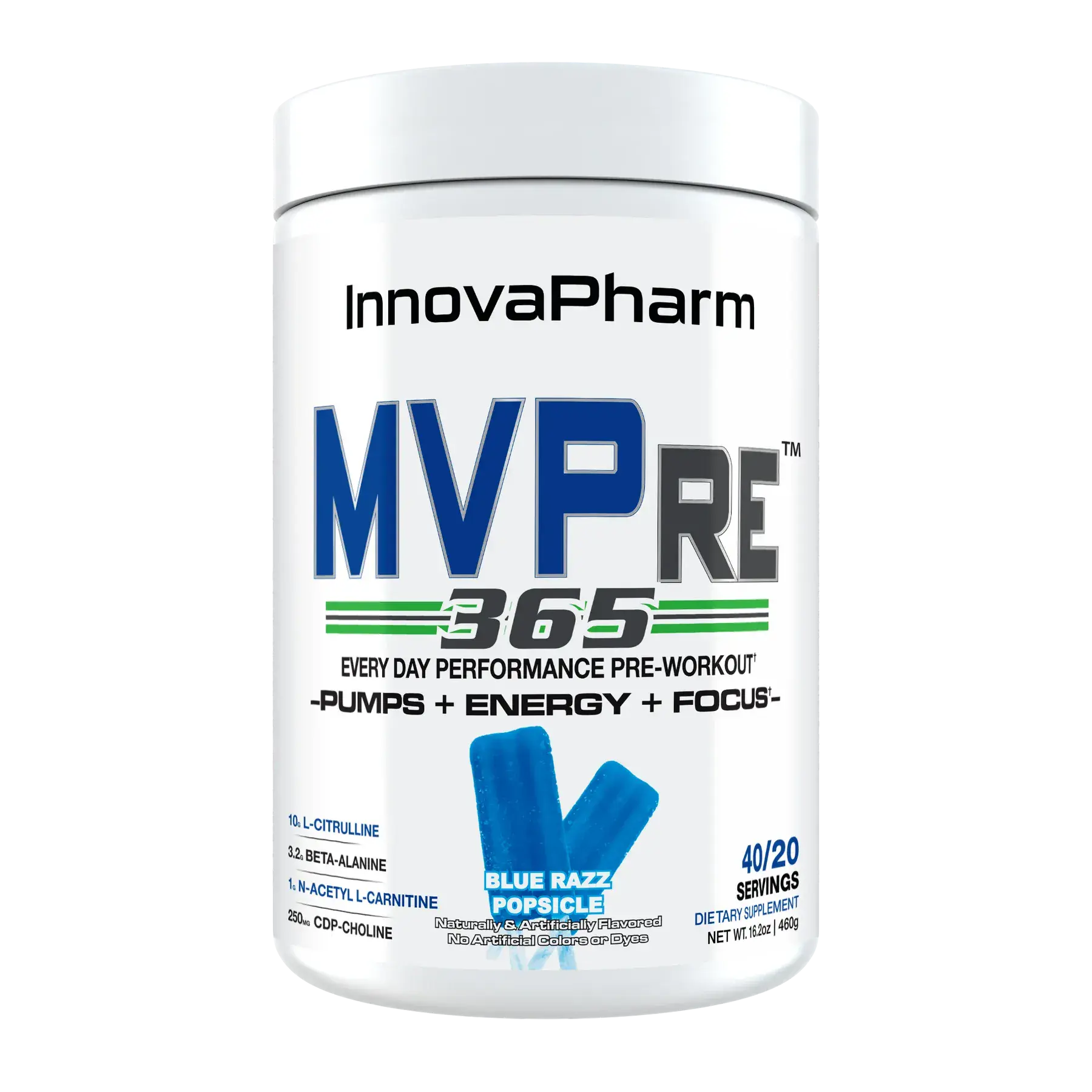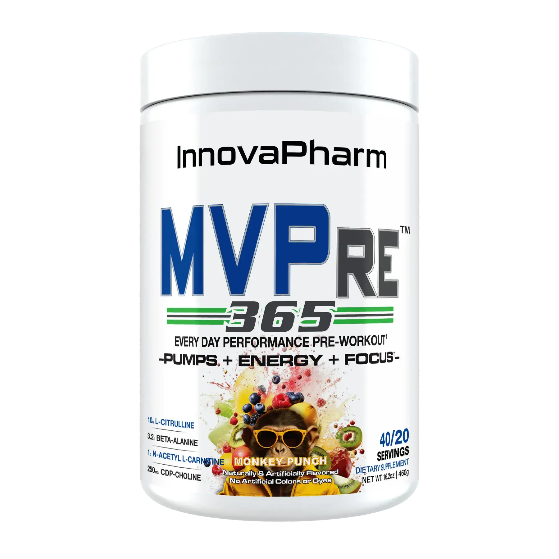 InnovaPharm brings you the new MVPre 365, an every day performance pre-workout designed to deliver savage pumps, laser focus and a clean, lasting energy with zero crash!